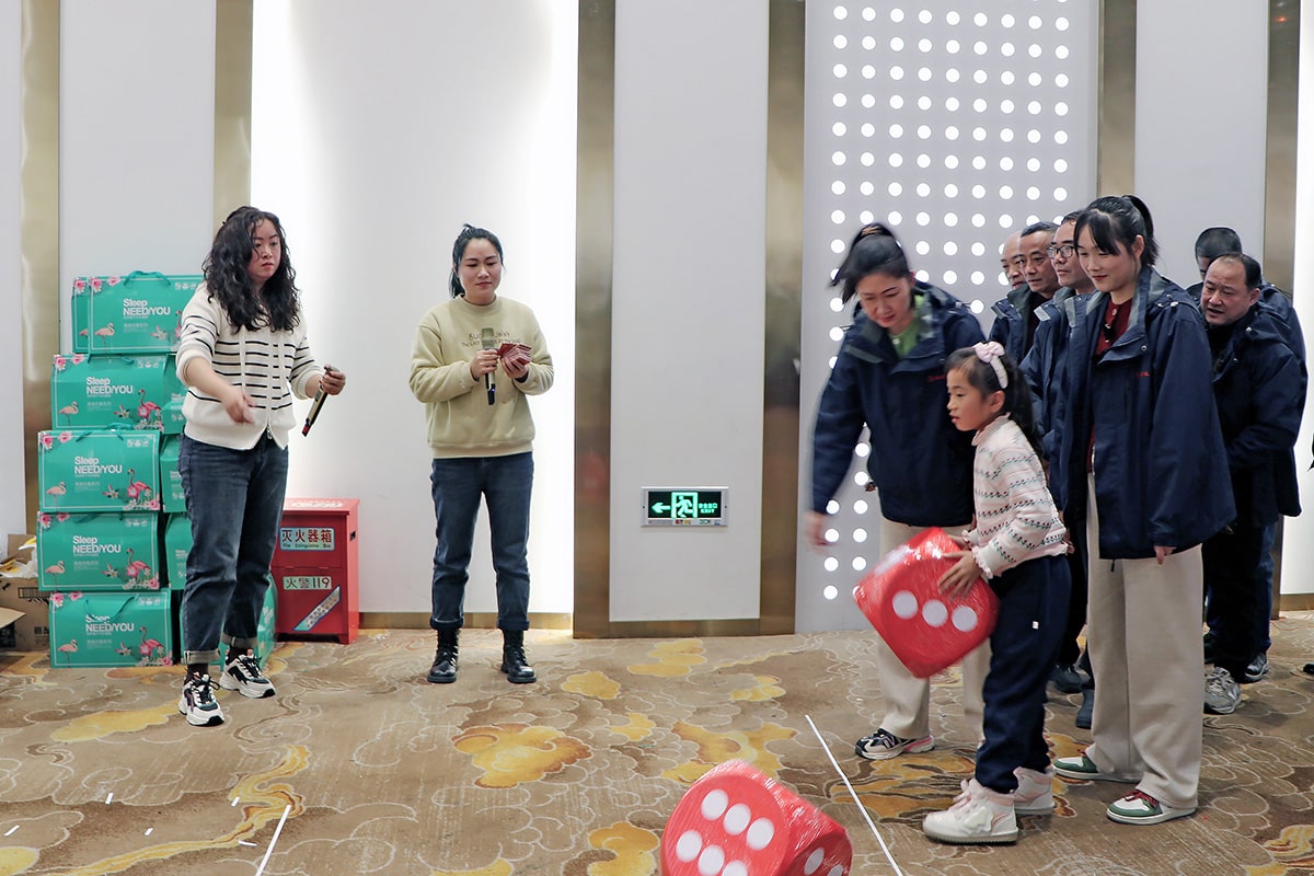 文藝演出之后,一場別開生面的擲色子、套圈小游戲又讓現場氣氛達到了高潮。活動開始前,現場已經布置妥當,色子整齊地擺放在指定位置。員工們紛紛到場,他們躍躍欲試,期待在這場游戲中展現自己的智慧與技巧。